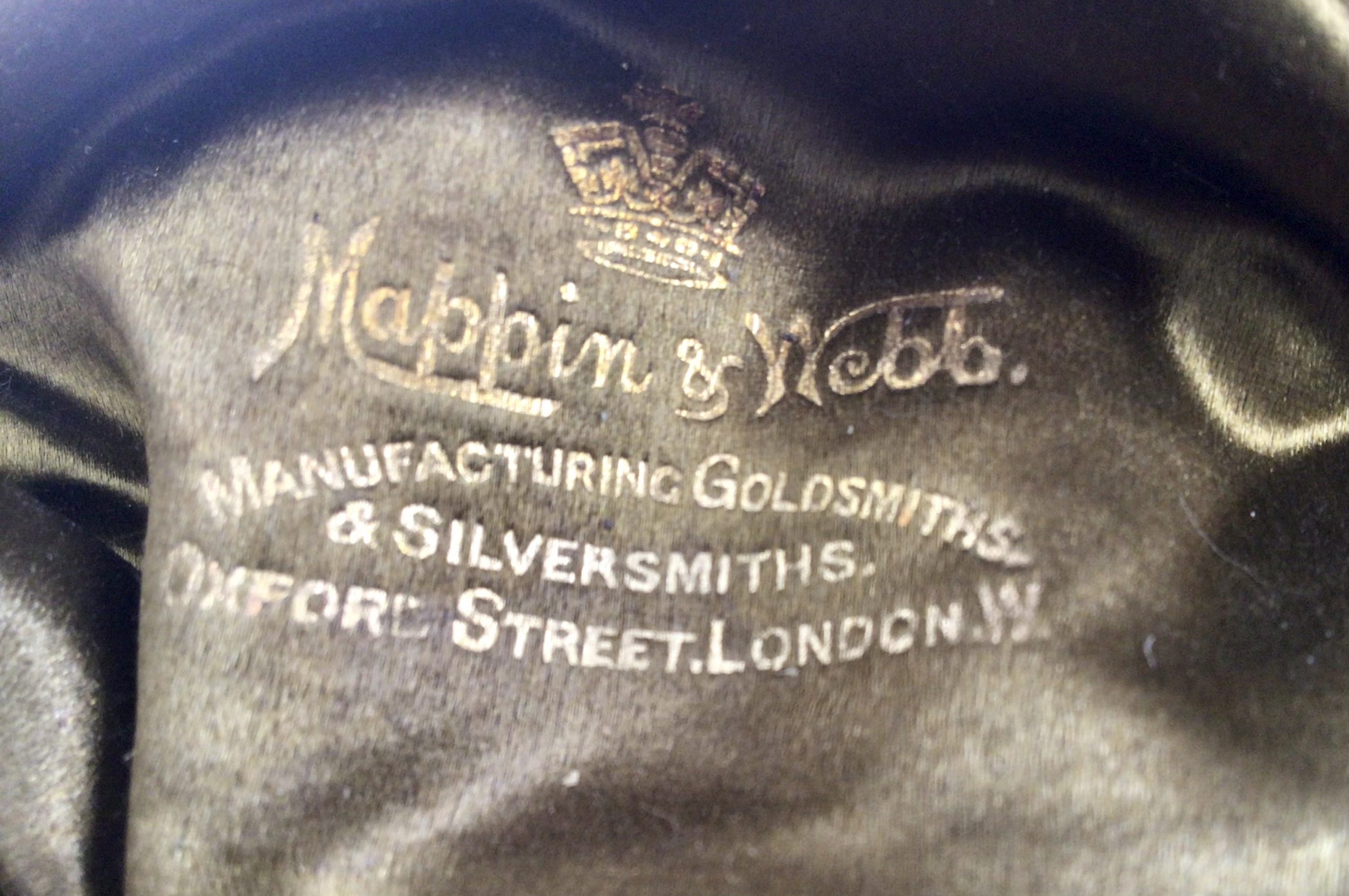 Mappin & Webb sterling silver salt and pepper set in original leather case. English Ca. 1910