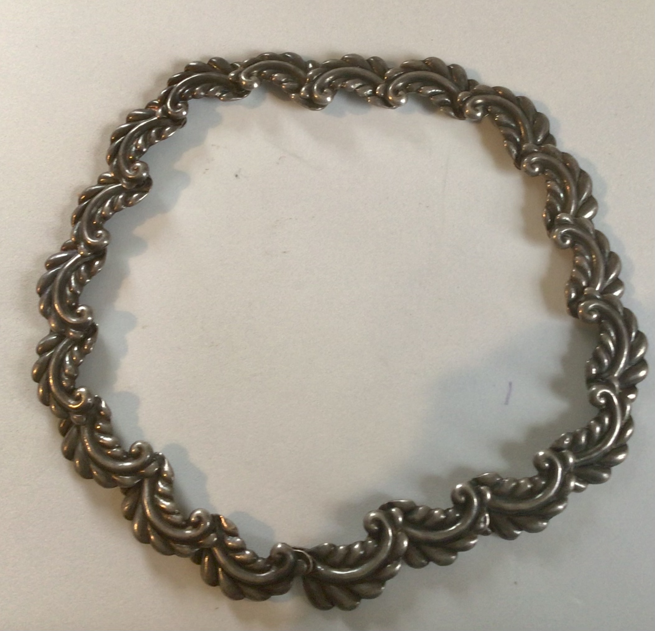Mexican Sterling Silver linked necklace— 14 1/2” long.