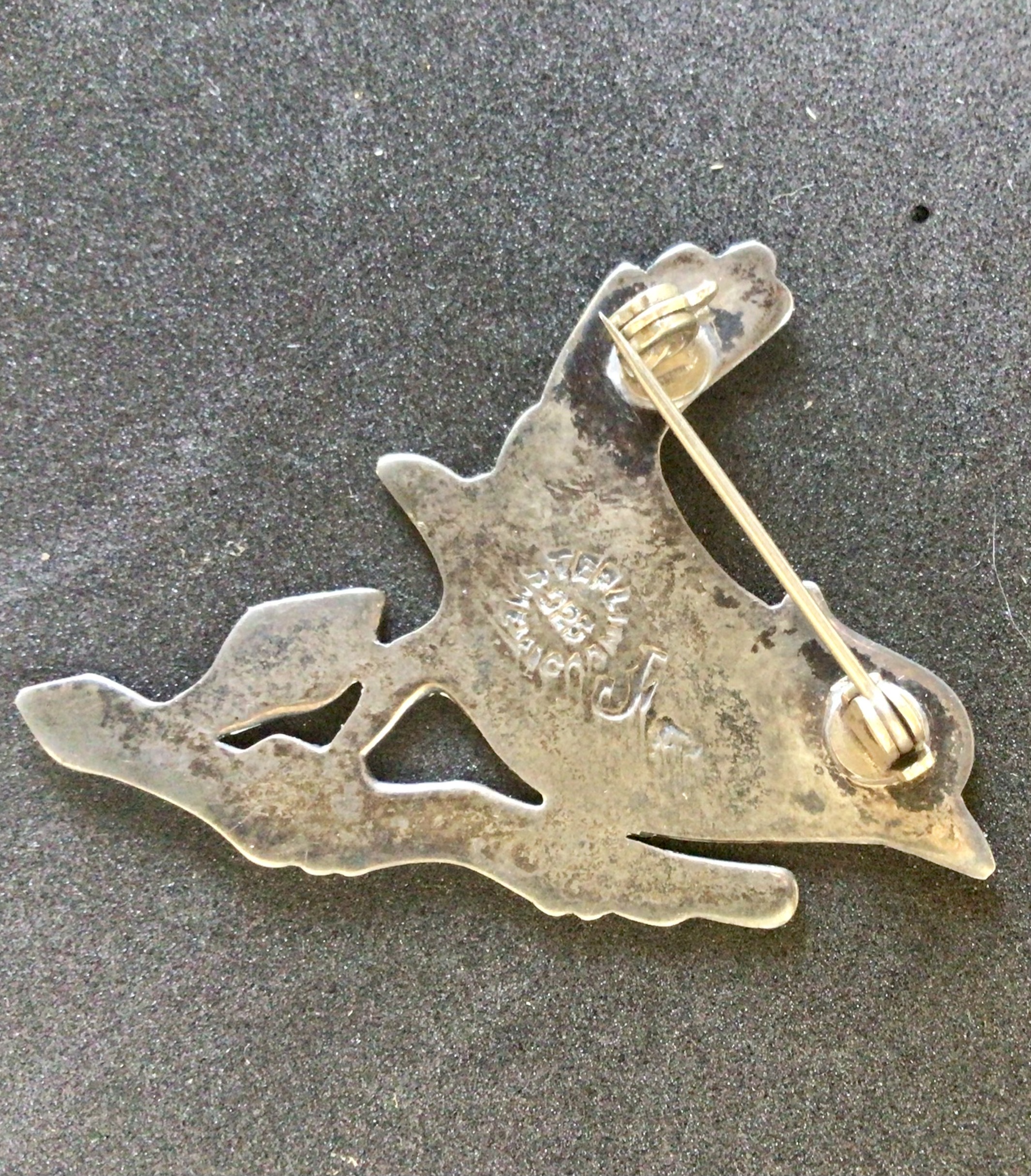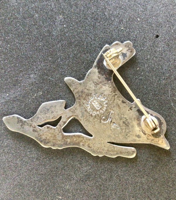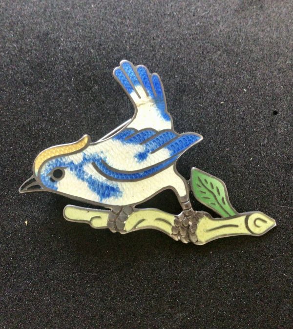 Sterling Silver & Cloisonné Blue Jay Pin 1 1/2” tall by 2” long